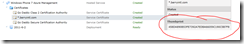The next step is to get the certificate from the dev box up to Windows Azure. Logon to Windows Azure, and select the hosted service you want to add the certificates to. The SSL certs are kept in a separate location from Management Certificates so make sure you don’t select Management Certificates. Select the Certificates node under the hosted service. It should be empty. On the top tool bar, select Add Certificate.Select the *.pfx file and password from the last step. Once the certificate is loaded on Windows Azure, select the main domain certificate and copy the Thumprint GUID. You will need that for your Visual Studio project.